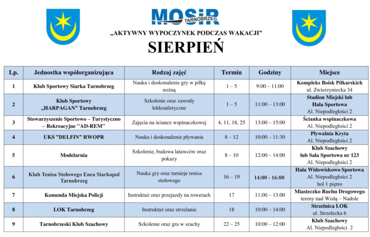 Szczegóły programu „Aktywny wypoczynek z MOSiR”: