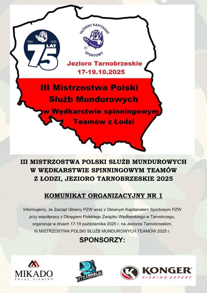 Zarząd Główny PZW wraz z Głównym Kapitanatem Sportowym PZW i Okręgiem PZW w Tarnobrzegu zapraszają na wyjątkowe wydarzenie — III Mistrzostwa Polski Służb Mundurowych w Wędkarstwie Spinningowym Teamów z Łodzi! ![]()