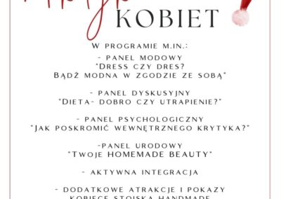 Fundacja Dla Ciebie oraz szkoła tańca Art. Dance organizuje „Mikołajki Kobiet” w sobotę 3 grudnia od godziny 16:00 w sali sportowej numer 123 znajdującej się w hali widowiskowo sportowej. Na sali zabezpieczono dla organizatorów stoły, krzesła oraz pozostały niezbędny sprzęt do przeprowadzenia imprezy.