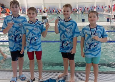 🥇Złoty medal sztafeta 4×50 m stylem dowolnym chłopców 10 lat i młodsi (Bartosz Miegoń, Michał Kubik, Leon Wójtowicz, Kacper Szponder)