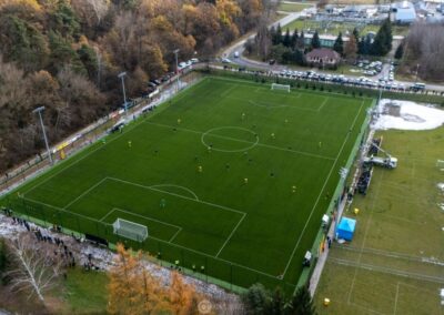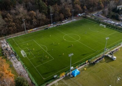 – wykonanie oświetlenia boiska (system oświetleniowy składający się z 6 masztów o natężeniu oświetlenia – 500 lx)