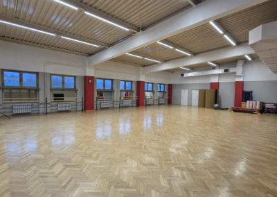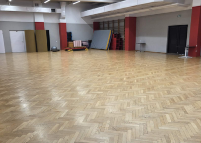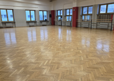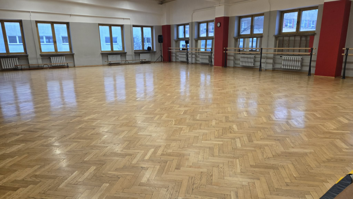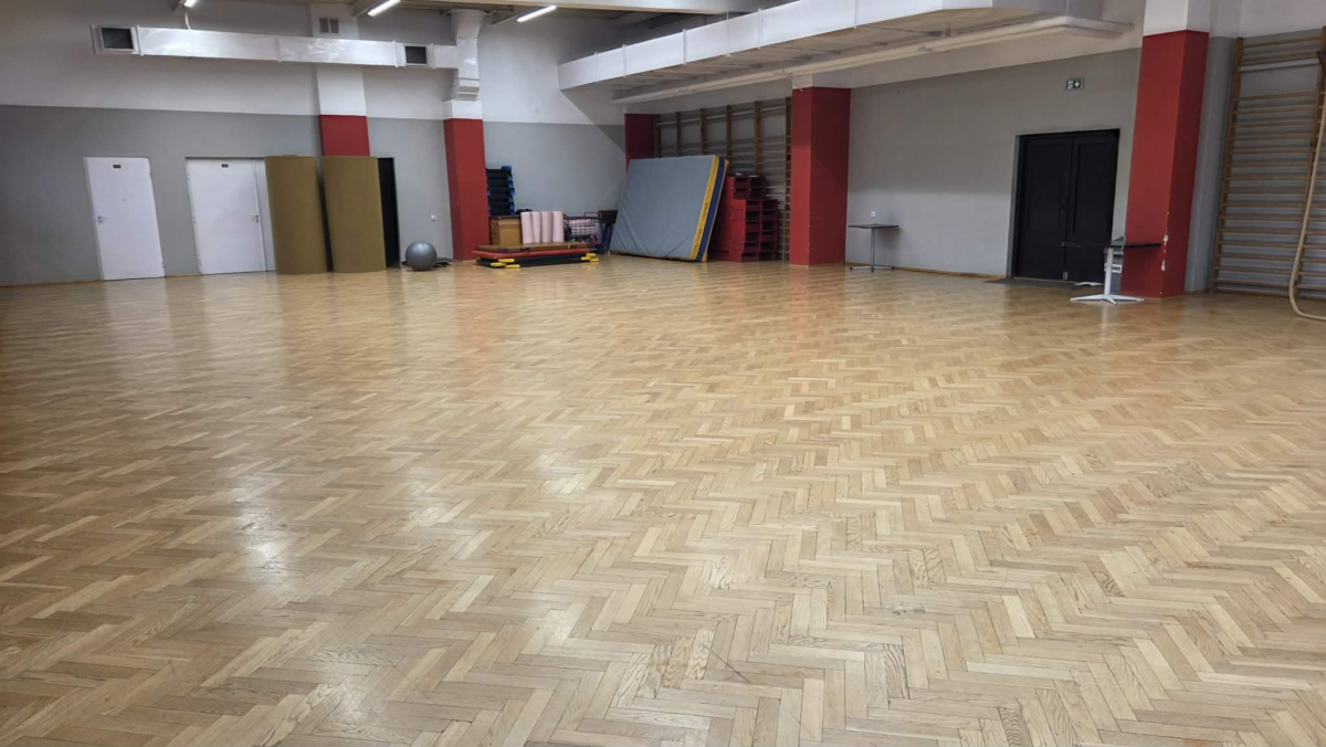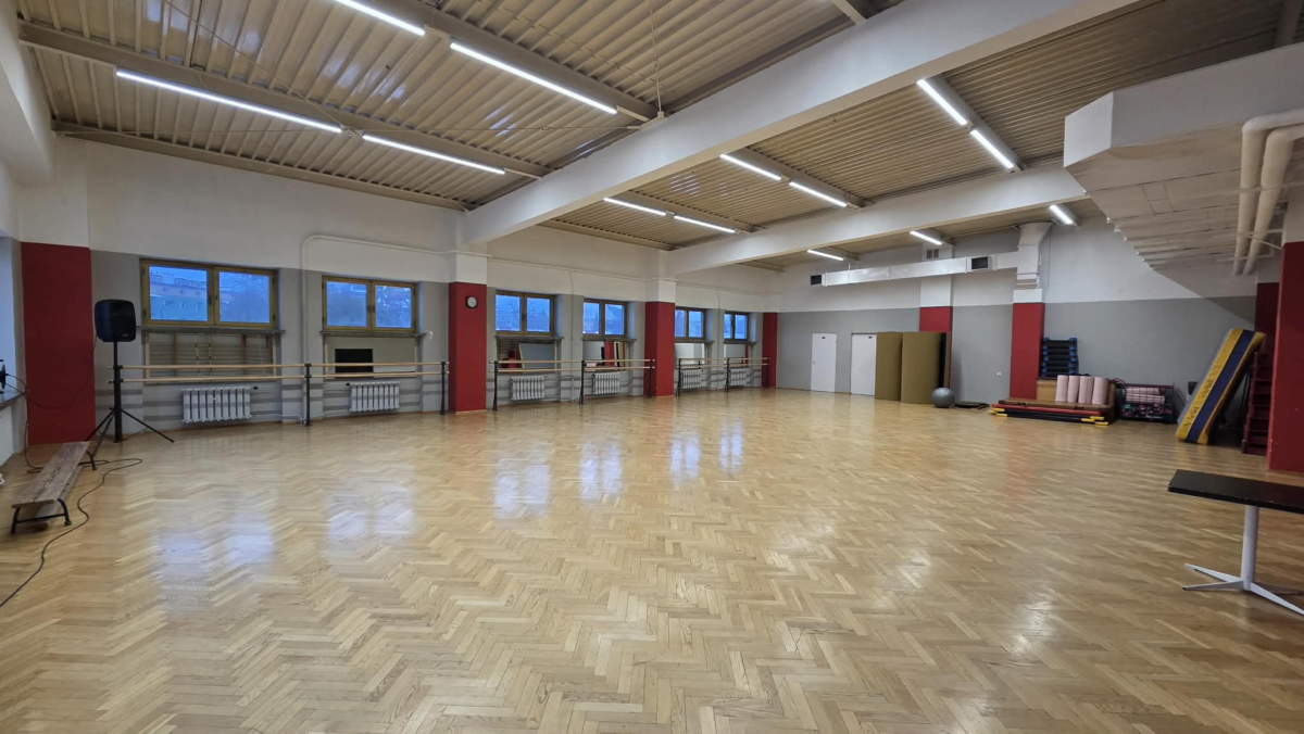 Sala sportowa o wymiarach 18 x 13 m. Wyposażona w lustra, dostosowana do zajęć tanecznych, gimnastycznych czy aerobiku.