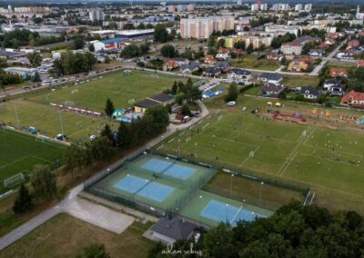 W kompleksie znajdują się 3 korty do tenisa ziemnego z nawierzchnią akrylową oraz zaplecze szatniowo-sanitarne.