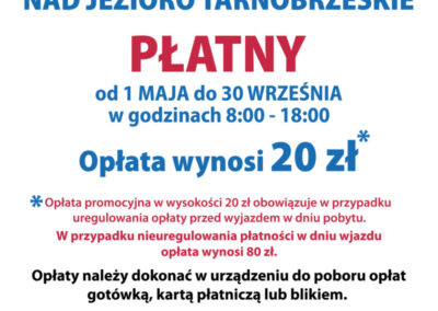 - Po weryfikacji poprawności danych zawartych we wniosku numer rejestracyjny pojazdu zostanie dopisany do systemu weryfikującego opłaty za wjazd nad Jezioro Tarnobrzeskie.