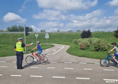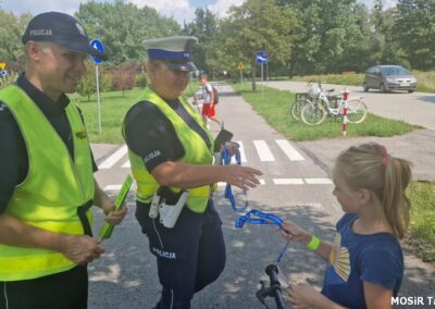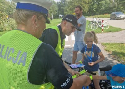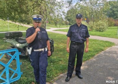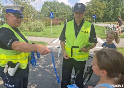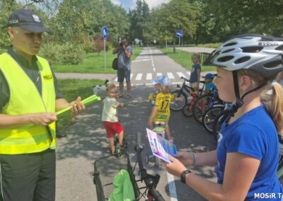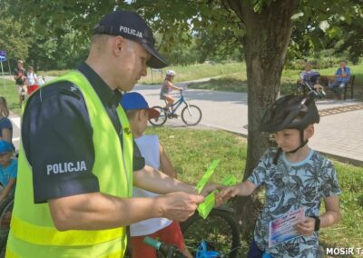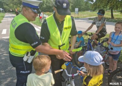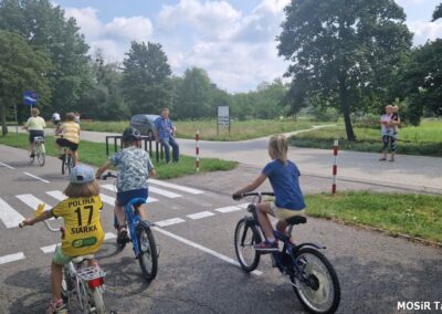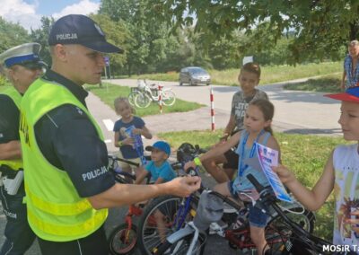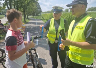 W dniu 17 sierpnia odbyły się zajęcia w ramach akcji Aktywny wypoczynek podczas wakacji z MOSiR – Instruktaż oraz przejazdy na rowerach. Dzieci uczyły się zasad bezpiecznej jazdy na rowerach na terenie Miasteczka Ruchu Drogowego. Zajęcia cieszyły się dużym zainteresowaniem, które profesjonalnie przeprowadzili funkcjonariusze KMP w Tarnobrzegu st. asp. Rafał Szymański oraz asp. Małgorzata Cywińska.