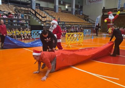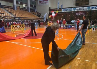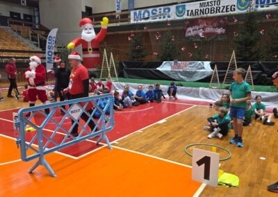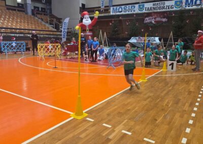 Mali uczestnicy rywalizowali w szeregu przygotowanych konkurencji ruchowych, które łączyły sportową aktywność z mikołajkową tematyką. Były biegi, tory przeszkód, zabawy zręcznościowe, a przede wszystkim dużo śmiechu i dobrej energii. Nad całością czuwał zespół instruktorów i pracowników MOSiR Tarnobrzeg, dbając o bezpieczeństwo i sprawny przebieg imprezy.