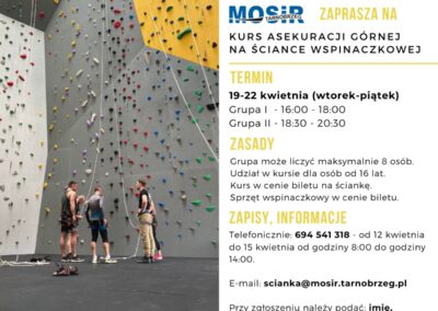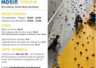 Regulamin dostępne jest na stronie https://mosir.tarnobrzeg.pl/scianka-wspinaczkowa/regulamin/