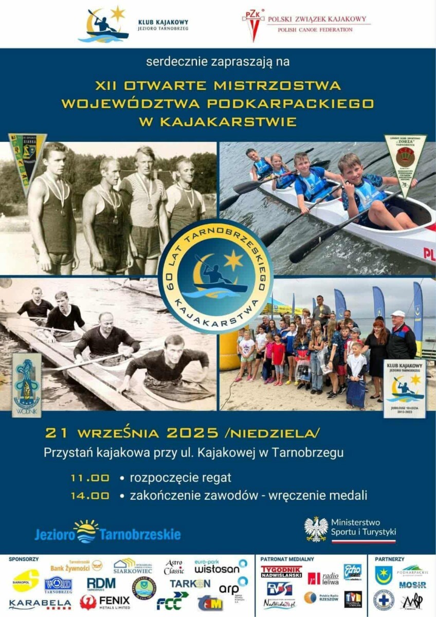 🚣♂️ Już wkrótce nad Jezioro Tarnobrzeskie powrócą wielkie sportowe emocje! Serdecznie zapraszamy wszystkich mieszkańców, turystów i fanów sportów wodnych na XII Otwarte Mistrzostwa Województwa Podkarpackiego w Kajakarstwie, które odbędą się w niedzielę, 21 września 2025 r.