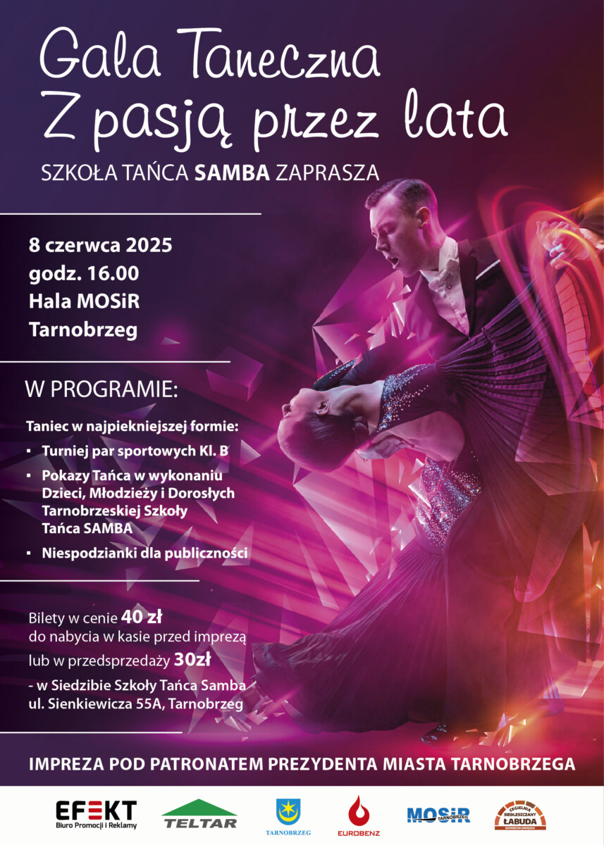 W przedsprzedaży tylko **30 zł** (do kupienia w siedzibie Szkoły Tańca Samba, ul. Sienkiewicza 55A)